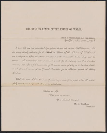The Ball in Honor of the Prince of Wales [Notice of appointment as member of the General Committee.]