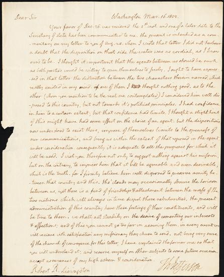 Letter from Thomas Jefferson to Chancellor Robert R. Livingston.