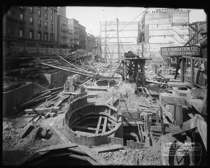 Woolworth Building, Looking West From Broadway [Construction zone.]