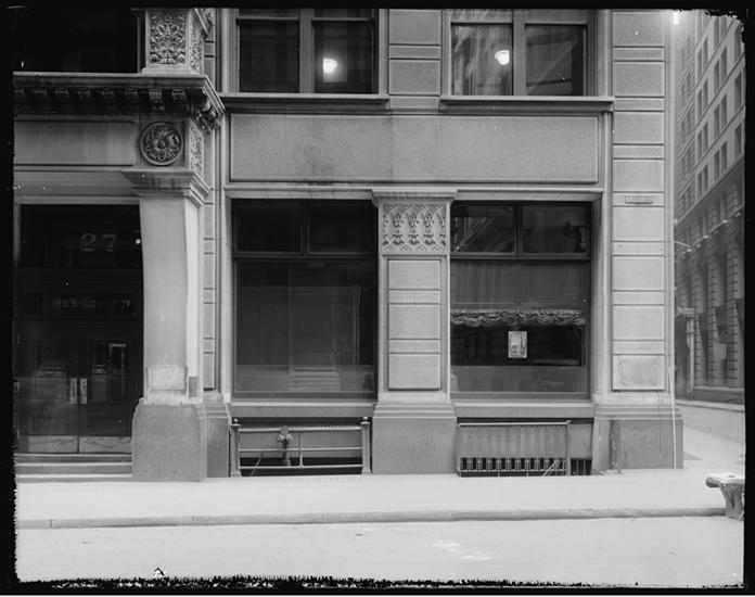 Exchange Place and William Street. View basement to Lord's Court Building, exterior.