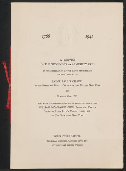 Celebration of the One Hundred and Seventy-fifth Anniversary of the opening on Saint Paul's Chapel