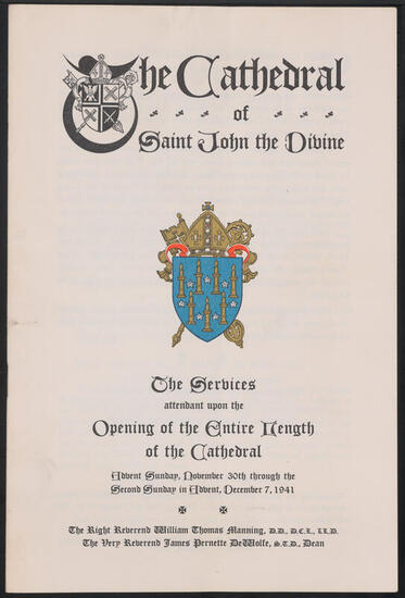 The Services attendant upon the Opening of the Entire Length of the Cathedral of Saint John the Divine