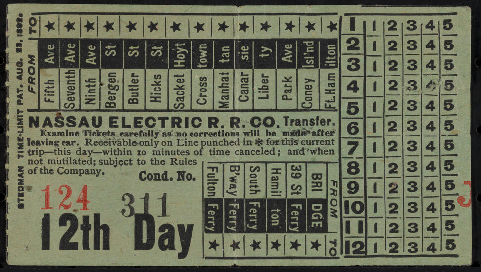 New Williamsburg & Flatbush Railroad Co. Passenger Ticket.