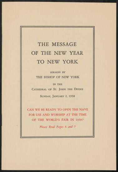 A Call for the Completion of the Sanctuary and Choir and the Opening of the great Interior of the Cathedral of St. John the Divine