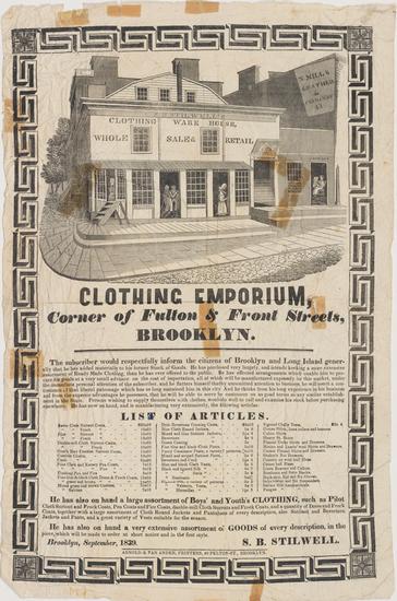 Joseph Laing & Co. Lithographers, Engravers & Printers and Edward Evans, Wholesale and Retail Clothing Warehouse, 66 Fulton Street.
