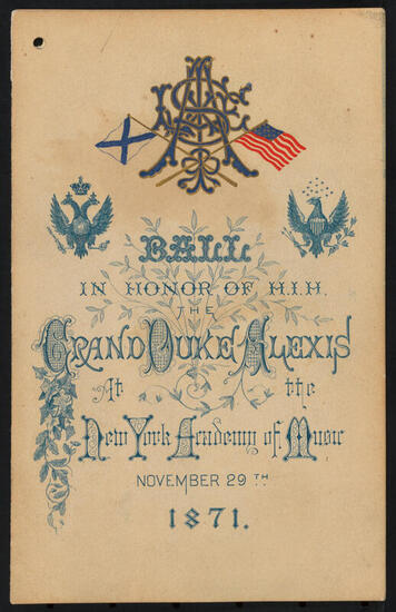 Complimentary Ball to H.I.H. the Grand Duke Alexis, and the Officers of the Russian Fleet