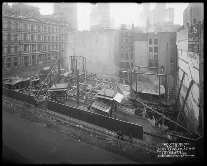 Woolworth Building, From South Center Looking N. E. [Construction zone.]
