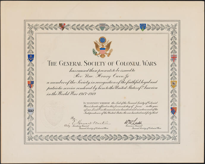 [Notification of membership to the Society of Colonial Wars in the State of New York.]