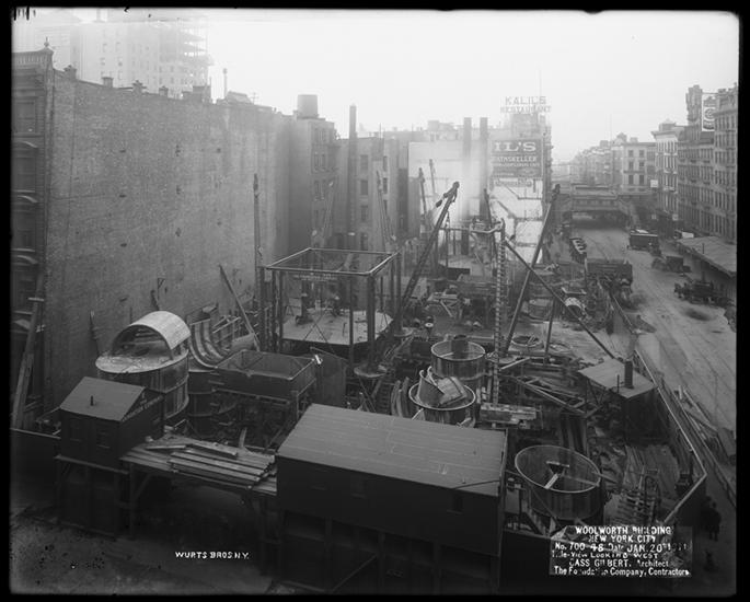 Woolworth Building, Looking West From S. E. Corner [Construction zone.]
