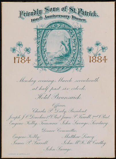 Friendly Sons of St. Patrick in the City of New York [118th anniversary dinner.]