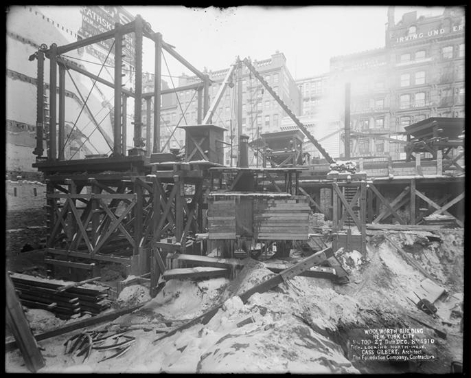 Woolworth Building, From Center Run Looking N. W. [Construction zone.]