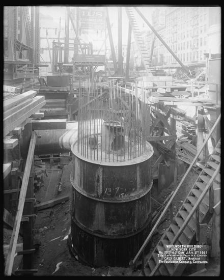 Woolworth Building, South Section From N. E. Corner [Construction zone.]