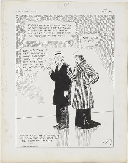 Mr. Milquetoast is asked by a Californian and a New Yorker if he is going to the World's Fair.