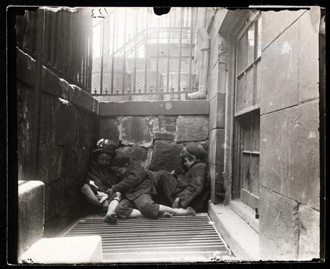 Street Arabs in sleeping quarters.