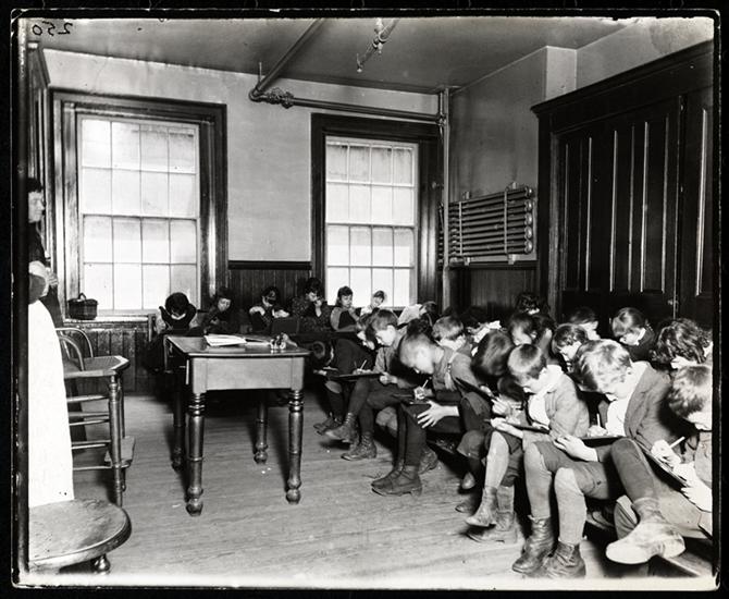 East Side Public Schools 2. Class without desks in the Essex Market School.