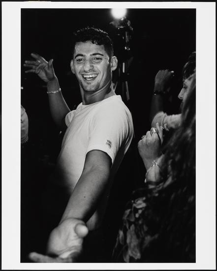 [Groom in a traditional dance at a Palestinian wedding at Widdi's Catering Hall.]