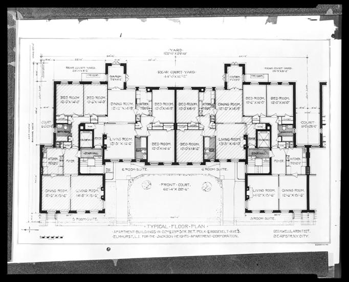 Typical floor plan [for an] apartment house in Jackson Heights, dated August 7, 1916.