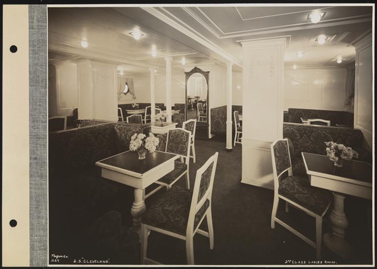 United American Lines, S.S. "Cleveland", Interior, Third Class, Dining Room.