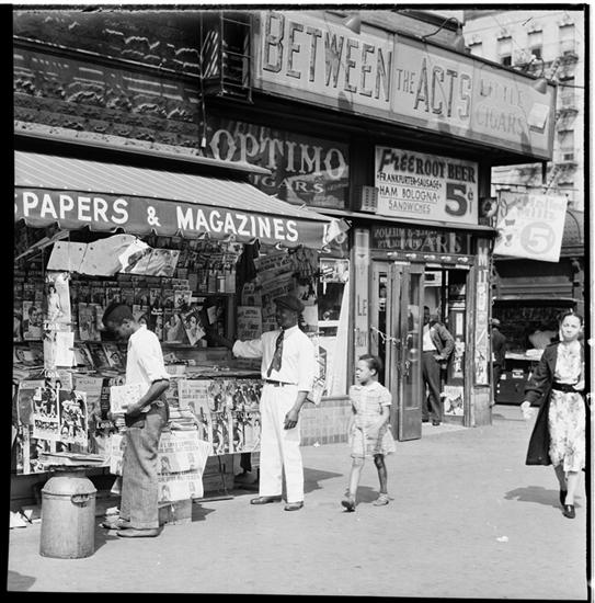 Street Scene in Harlem in front of Daniel's Bar and Grill.