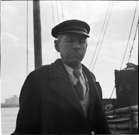 Waterfront. [Man a holding a bottle of denatured alcohol marked "Poison".]