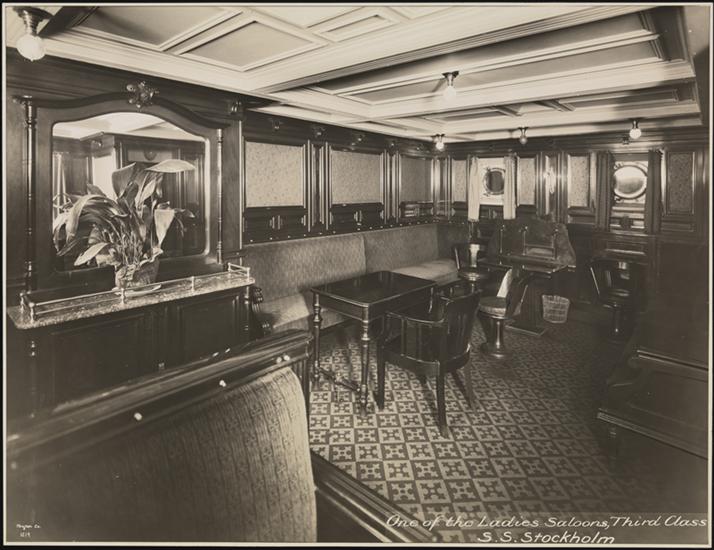 Swedish American Line, S.S. "Stockholm", Interior of Third Class Ladies' Room.