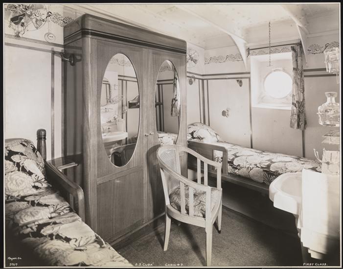French Line, S.S. "Cuba" Pier 57 North River, First Class, Interior, Cabin de Luxe #17.