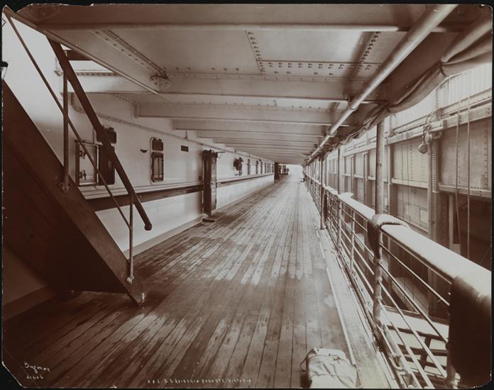 A promenade deck on the S.S. "Kaiserin Auguste Victoria" at dock