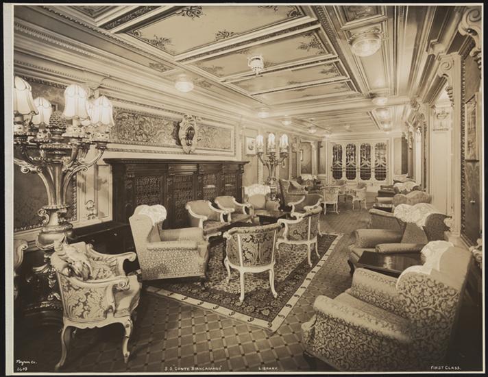 Lloyd Sabaudo Line, S.S. "Conte Biancamano" Pier 95 N.R., First Class Interior, Library.