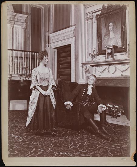 A scene from Edward E. Rose's play "Richard Carvel" featuring John Drew and Ida Conquest.
