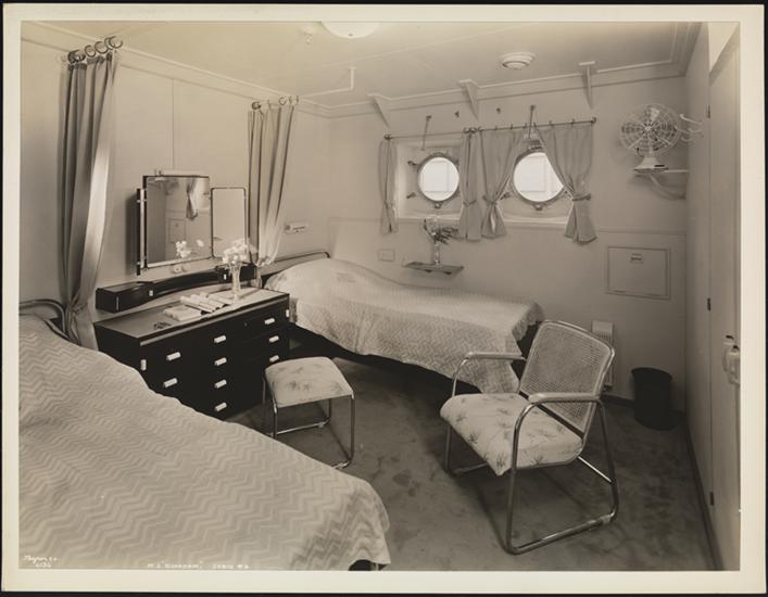 S.S. "Nieuw Amsterdam", 5th Street, Hoboken, N.J., Tourist Class, Inside 3 Bed Cabin #707 with Bathroom.