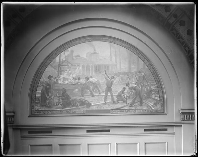 214 Broadway. National Park Bank, "Agriculture" mural painting at east end by Herte.