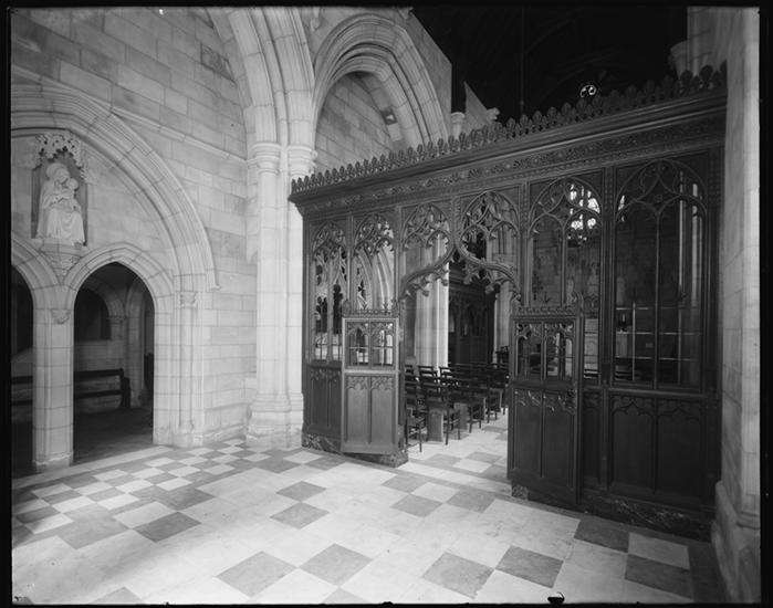 Wall Street. Trinity Church, Dix Memorial Chapel, view outside of screen.