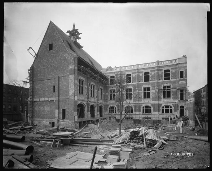 Atlantic Avenue and Washington Avenue. College of Immaculate Conception [during] construction.