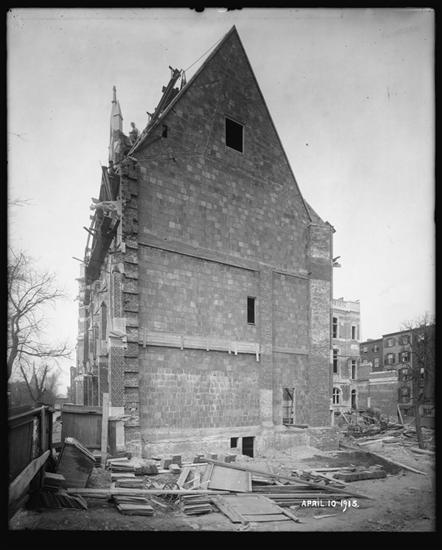 Atlantic Avenue and Washington Avenue. College of Immaculate Conception [during] construction.