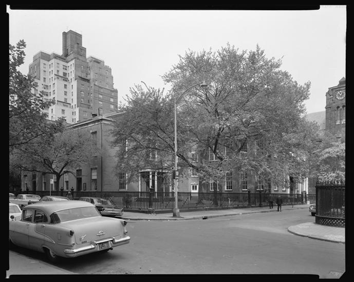 East 16th Street and Rutherford Place. Friends Seminary. General exterior view of school and meeting house