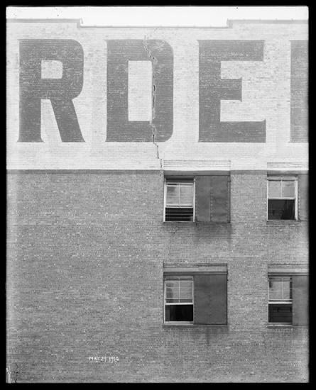 180th Street and Park Avenue. Detail of south wall to Borden's Milk Company Building, view of cracks.