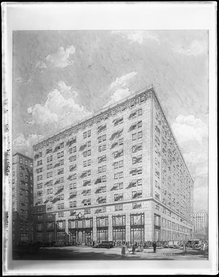 Lexington Avenue and 48th Street. Hotel Barclay, detail of East 47th Street front.