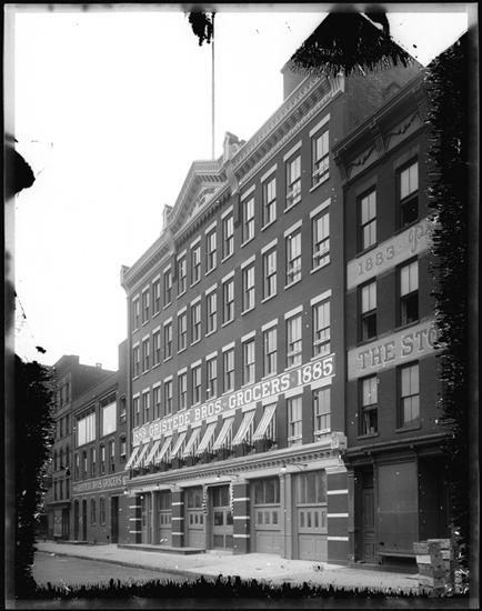128th Street and Park Avenue. Gristede Bros., with group of people [employees?].