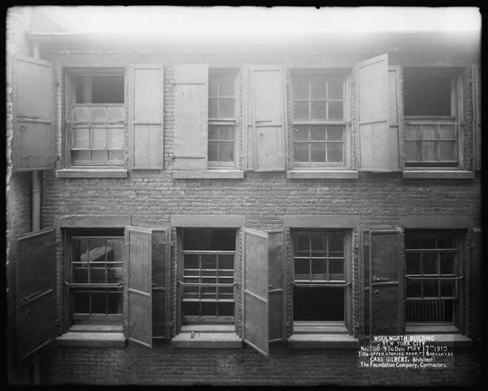 Woolworth Building, Middle Stories [at] Rear of 7 Barclay Street [Building near construction zone.]