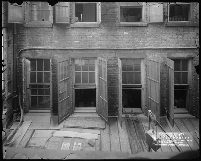 Woolworth Building, Middle Stories [at] Rear of 7 Barclay Street [Building near construction zone.]