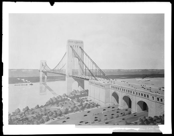 Hudson River Bridge. Rendering by John T. Cronin 1927, revised Feb. 29, 1929.