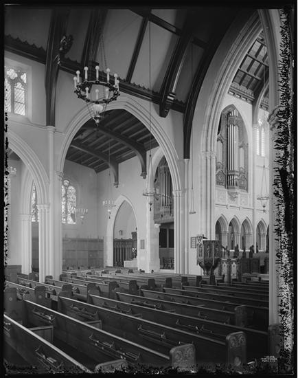 71st Street at the N.W. corner of Broadway. Photo record, Christ Protestant Episcopal Church, Sunday School room. Looking west at arch to chancel.