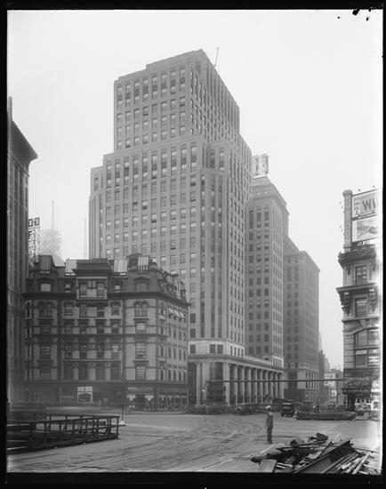 West 57th Street. Fisk Building, detail of upper stories, from N.W.