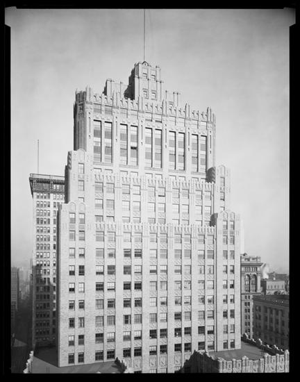 39 Broadway. Harriman Building, detail of upper part [taken from] North American Co. Building.