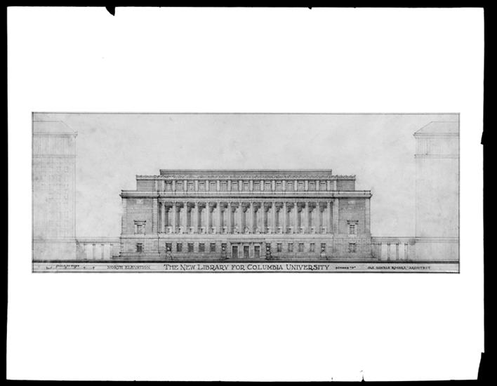 New library for Columbia University. Scheme "F", north elevation rendering.