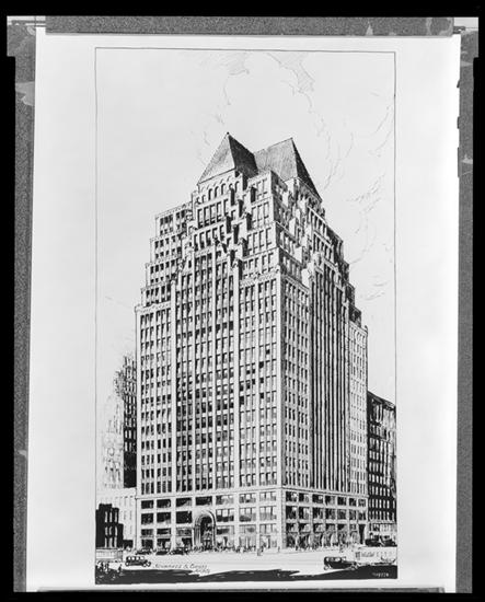 West 33rd Street. Office Building, watercolor rendering by Hughson Hawley.