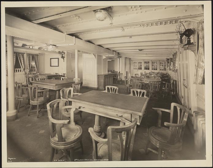 Italia-America Shipping Corp., S.S. "Duilio", Interior, Third Class, Smoking Room.