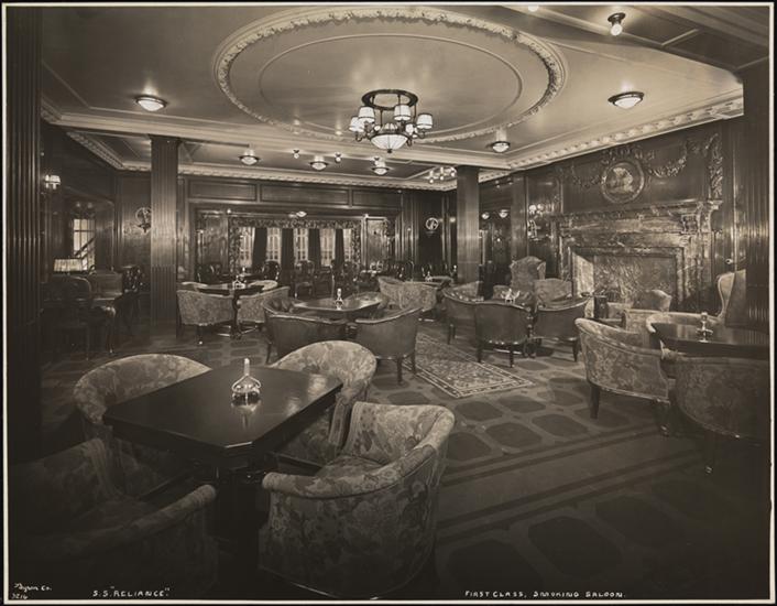 United American Lines, S.S. "Reliance", Interior, First Class, Cor. of Smoking Salon.