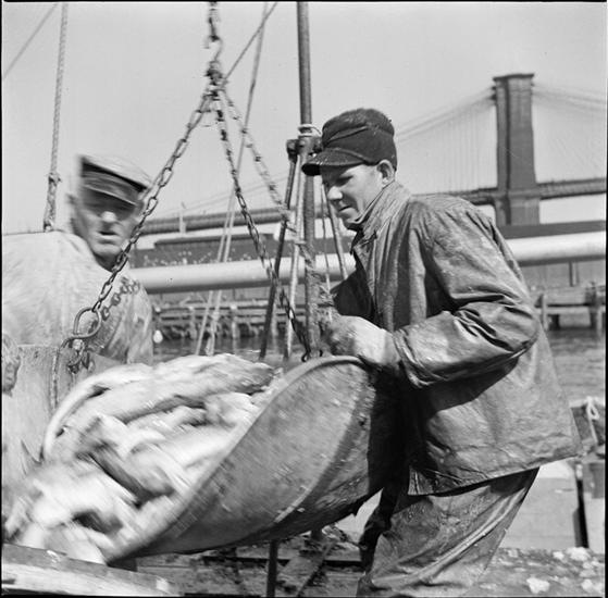 Waterfront. [Horse-drawn delivery wagon on a wharf.]