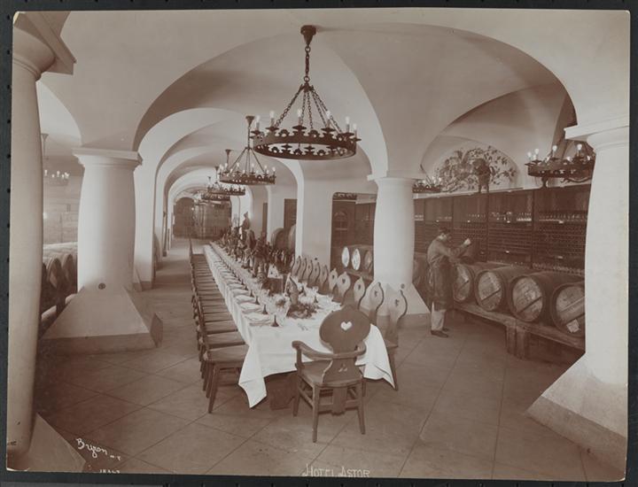 Interior of rathskellar/wine cellar at the Hotel Astor, Broadway and 45th Street.